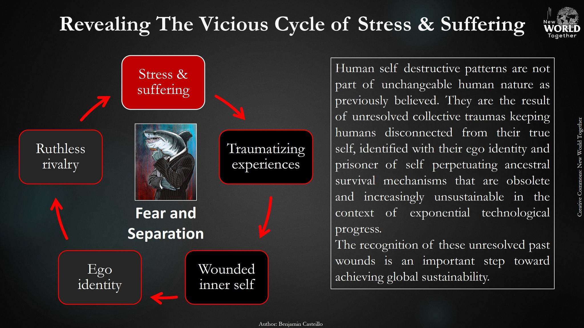 Par exemple, les Traumatismes collectifs irrésolus génèrent des Peurs, et ces peurs génèrent ensuite d’autres Traumatismes :