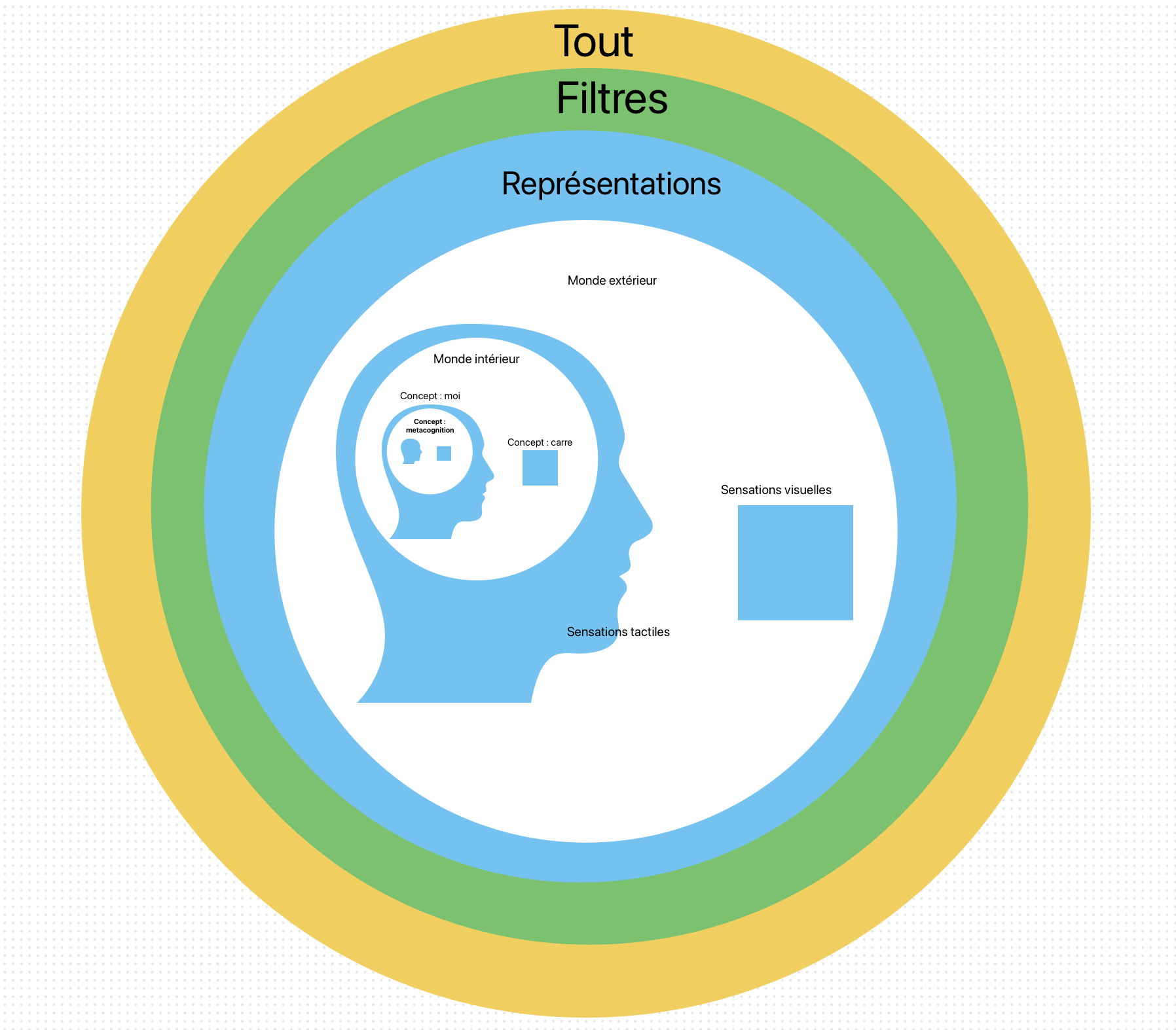 Cet espace produit et contient toutes tes Représentations, et donc aussi Ton système mental, Ton égo, ton Environnement, tes Comportements et ton Expérience