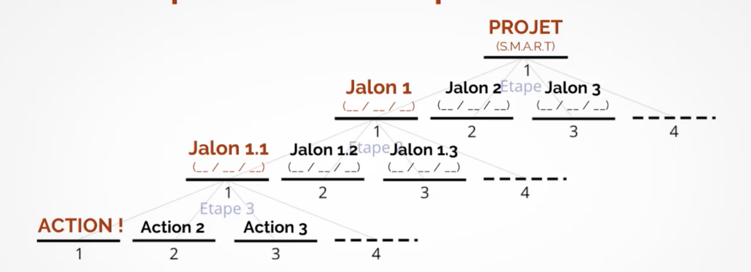 Jalon 1 = créer le site web Jalon 2 = Créer les formations Jalon 3 = vendre une formation à un client