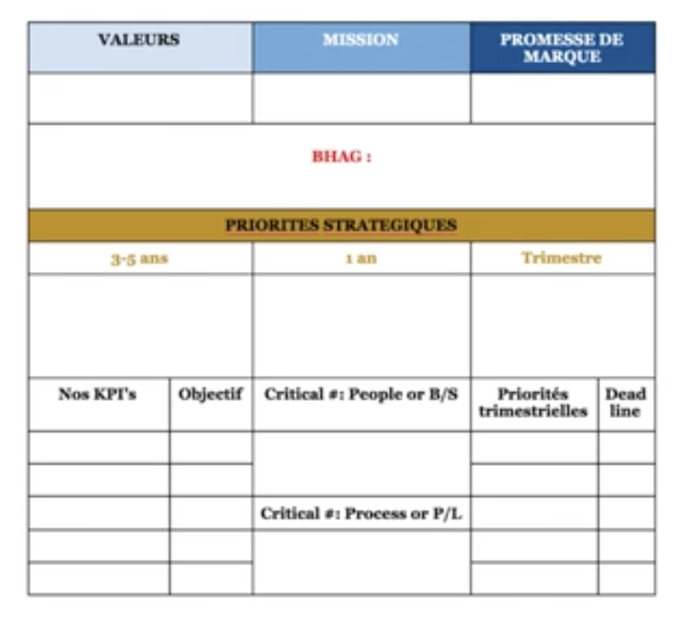 • Les prios stratégiques à 3 mois, 1 an, 3-5 ans