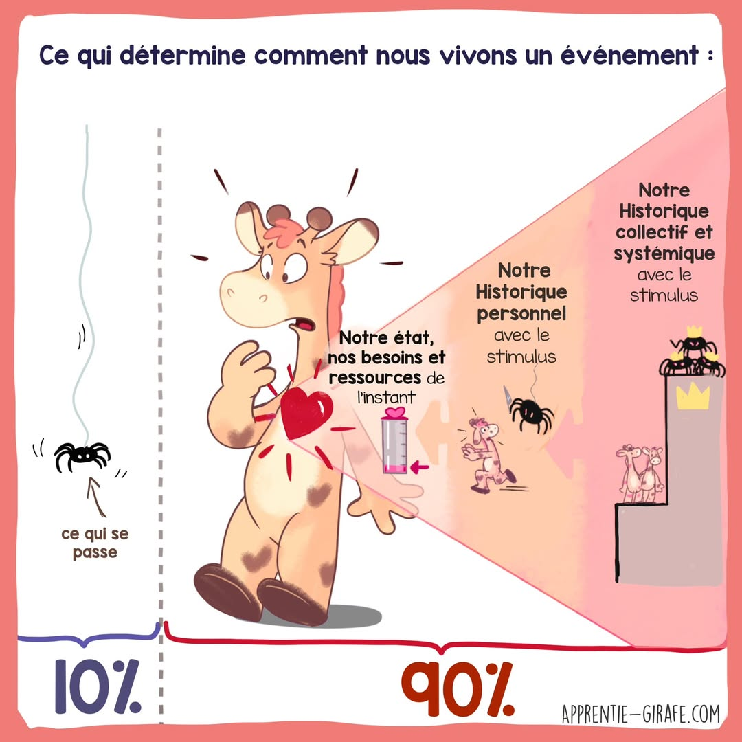 Petite réflexion du jour : Un même événement peut être extrêmement sensible pour quelqu’un et pas du tout pour quelqu’un d’autre. Alors plutôt que de chercher à débattre du degré d’importance de l’événement, puis-je essayer de me relier à pourquoi cet événement lui fait autant d’effet ? — Apprentie girafe